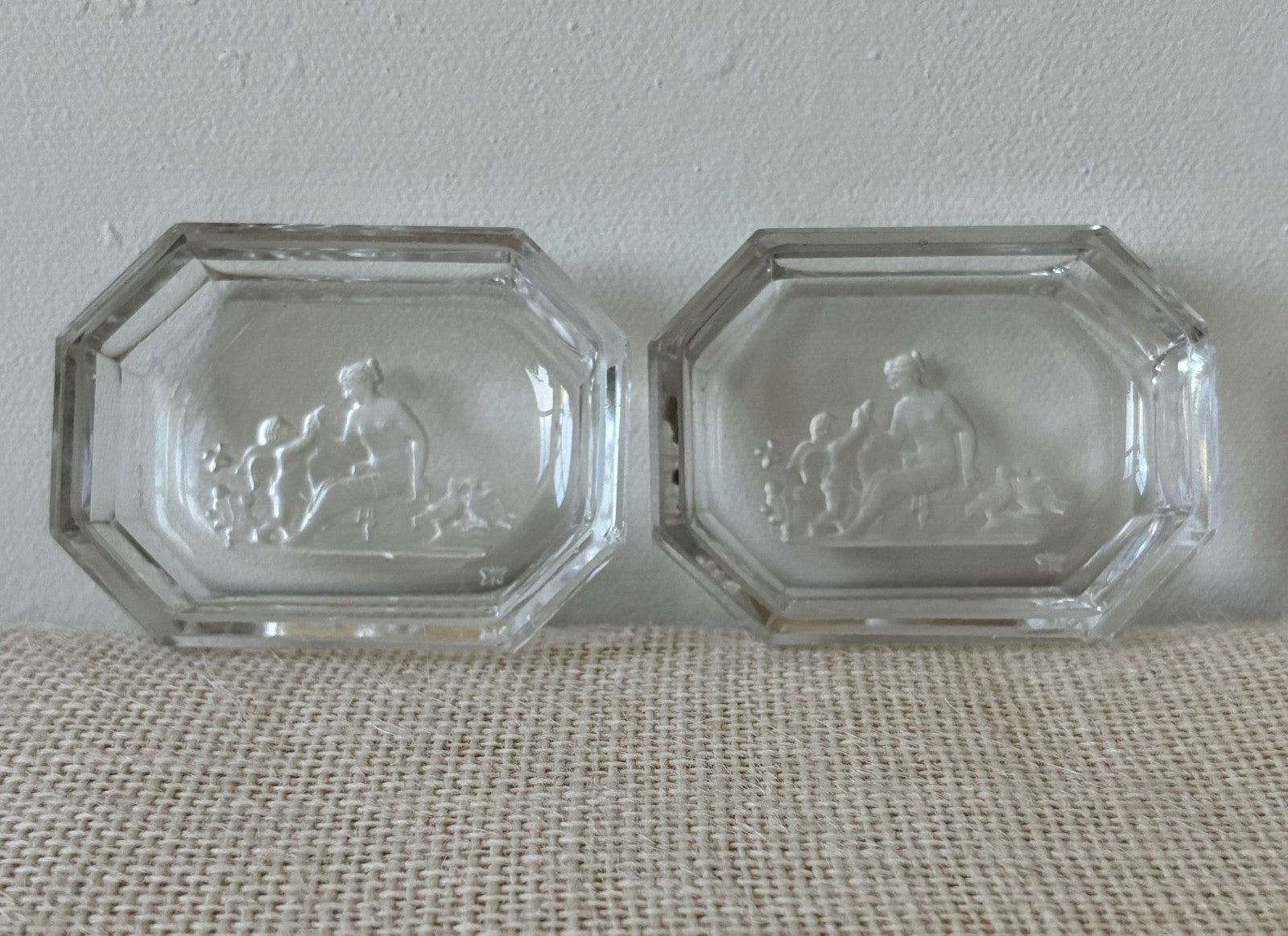 Art Deco Heinrich Hoffmann Intaglio Glass Pin or Ash Trays with Venus & Cupid