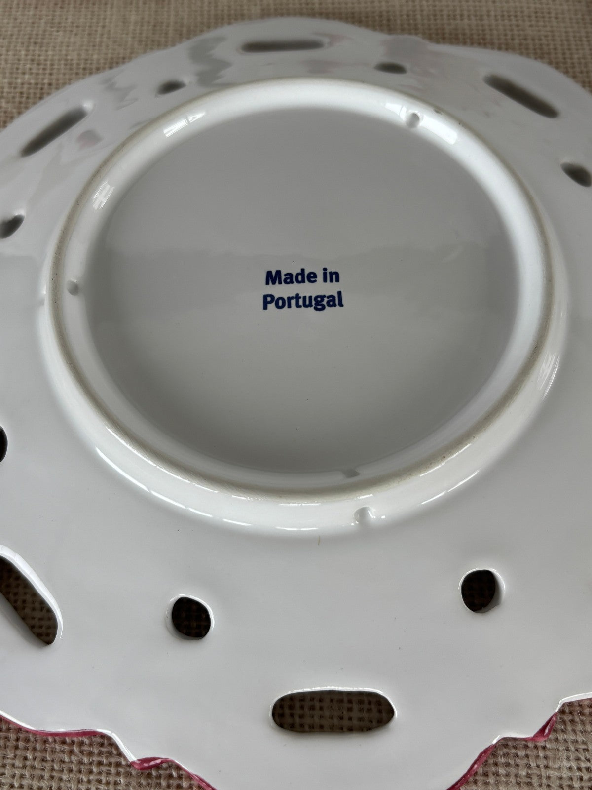Hand painted PINK Wall Plates with Lace Rim by Vestal Alcobaca